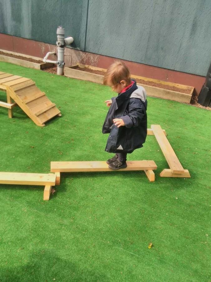 This term the Caterpillar Room children have been enjoying exploring the new equipment in their garden, which is a great opportunity for them to develop their gross motor skills when balancing and climbing.