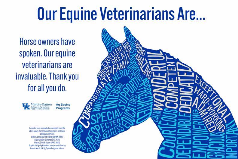 What started as a research project focused on demand for equine veterinary services turned into something much bigger. Although the research produced three peer-reviewed publications, perhaps the most impactful (and unexpected!) part of this research was the outpouring of unsolicited gratitude that thousands of U.S. horse owners voiced. CONTINUED ON PAGE 21