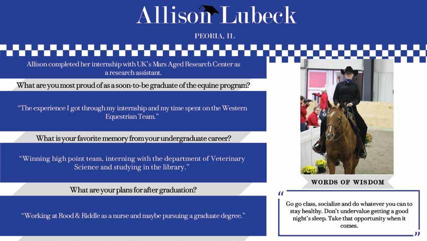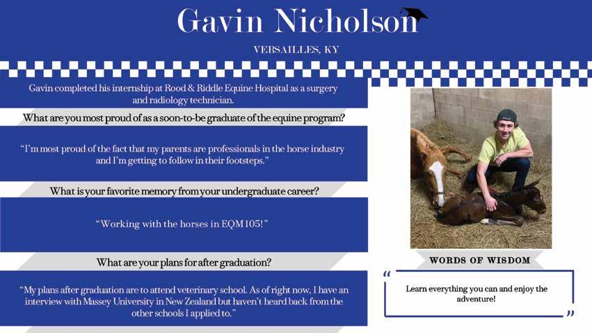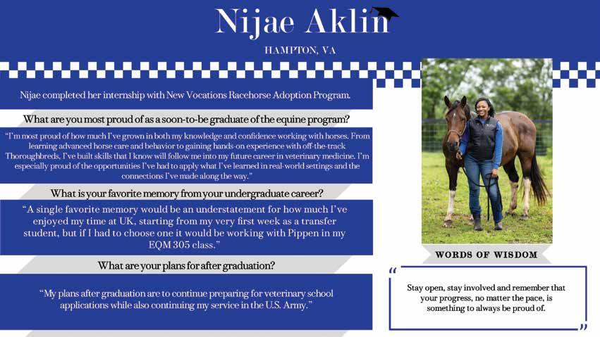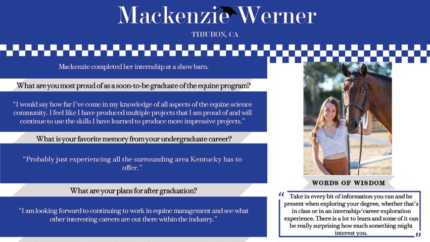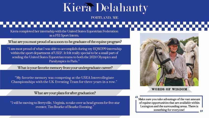 “Allowing students to showcase their work and reflect on both their internship and undergraduate experience gives them the opportunity to further prepare for their professional journey,” said Savannah Robin, lecturer of career and professional development within UK Ag Equine Programs. “This practice of sharing their story and experience provides preparation for future interviews, client testimonies and more. It is important to reflect on our experiences and also communicate what we’ve learned in order to grow; this experiential learning showcase provides that opportunity to our students.”