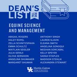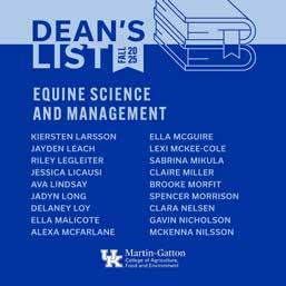 Getting to know my colleagues was equally rewarding. They all share a deep dedication to the University of Kentucky and to Equine Programs. Working alongside them was a privilege. The support they offered me and the skills I gained during my time here are unmatched. I’m excited to continue my career in Kentucky’s horse industry and to carry forward the professional growth I’ve gained at UK.