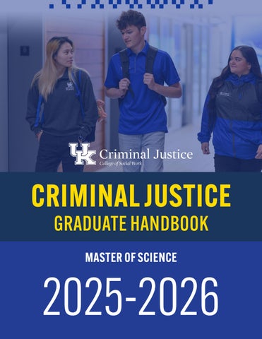 The Criminal Justice Graduate Handbook contains general information about the University of Kentucky and the College of Social Work, including our mission, policies, and organizational resources. This handbook is intended to be a quick reference for students and is not intended to be comprehensive or to address all the possible applications of, or exceptions to, the general policies and resources described.