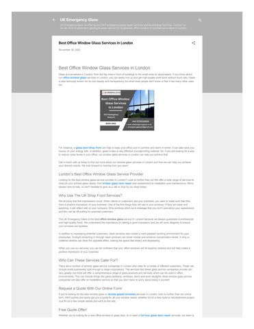 We are a glass repair company that specializes in emergency glass repair services in London. Our team of experienced and qualified technicians who are available 24 hours a day, 7 days a week to provide you with the best possible service.