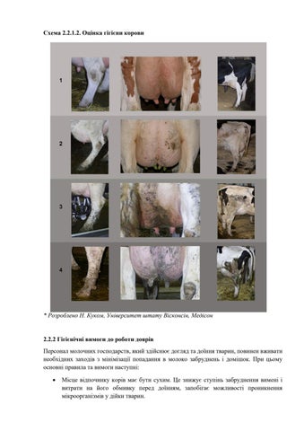 2.2.2 Гігієнічні вимоги до роботи доярів Персонал молочних господарств, який здійснює догляд та доїння тварин, повинен вживати необхідних заходів з мінімізації попадання в молоко забруднень і домішок. При цьому основні правила та вимоги наступні: •
