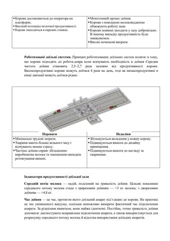 Індикатори продуктивності доїльної зали Середній потік молока — надій, поділений на тривалість доїння. Цільові показники середнього потоку молока стада з триразовим доїнням — >3 кг молока; з дворазовим доїнням — >4,8 кг. Час доїння — це час, протягом якого доїльний апарат під’єднано до корови. На практиці це час увімкненого вакууму, оскільки неможливо виміряти фактичний час підключення апарата. За рідкісним винятком, вони майже ідентичні. Постійна, точна тривалість доїння допомагає діагностувати неправильне відключення апарата, а також використовується для розрахунку середнього потоку молока й відсотка використання доїльних апаратів.