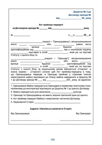 Додаток № 3 до Договору оренди № від _______________ 20_ року Акт прийому-передачі за Договором оренди № ______ від _______________________ року. м. ____________