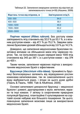 Таблиця 22. Запилення смородини залежно від відстані до запилювального точка (n=50) (Kашина, 2009) Відстань точка від ягідника, м