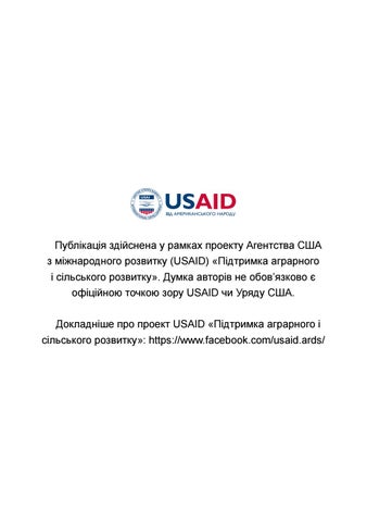 Публікація здійснена у рамках проекту Агентства США з міжнародного розвитку (USAID) «Підтримка аграрного і сільського розвитку». Думка авторів не обов’язково є офіційною точкою зору USAID чи Уряду СШA. Докладніше про проект USAID «Підтримка аграрного і сільського розвитку»: https://www.facebook.com/usaid.ards/
