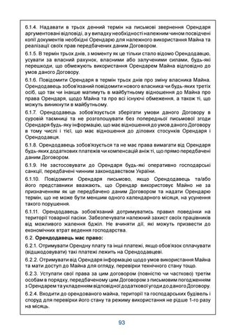 6.1.4. Надавати в трьох денний термін на письмові звернення Орендаря аргументовані відповіді, а у випадку необхідності належним чином посвідчені копії документів необхідні Орендарю для належного використання Майна та реалізації своїх прав передбачених даним Договором. 6.1.5. В термін трьох днів, з моменту як це тільки стало відомо Орендодавцю, усувати за власний рахунок, власними або залученими силами, будь-які перешкоди, що обмежують використання Орендарем Майна відповідно до умов даного Договору. 6.1.6. Повідомити Орендаря в термін трьох днів про зміну власника Майна. Орендодавець зобов’язаний повідомити нового власника чи будь-яких третіх осіб, що так чи інакше матимуть в майбутньому відношення до Майна про права Орендаря, щодо Майна та про всі існуючі обмеження, а також ті, що можуть виникнути в майбутньому. 6.1.7. Орендодавець зобов’язується зберігати умови даного Договору в суровій таємниці та не розголошувати без попередньої письмової згоди Орендаря будь-яку інформацію, що має відношення до умов даного Договору в тому числі і тієї, що має відношення до ділових стосунків Орендаря і Орендодавця. 6.1.8. Орендодавець зобов’язується та не має права вимагати від Орендаря будь-яких додаткових платежів чи компенсацій аніж ті, що прямо передбачені даним Договором. 6.1.9. Не застосовувати до Орендаря будь-які оперативно господарські санкції, передбачені чинним законодавством України. 6.1.10. Повідомити Орендаря письмово, якщо Орендодавець та/або його представники вважають, що Орендар використовує Майно не за призначенням як це передбачено даним Договором та надати Орендарю термін, що не може бути меншим одного календарного місяця, на усунення такого порушення. 6.1.11. Орендодавець зобов’язаний дотримуватись правил поведінки на території товарної пасіки. Забезпечувати належний захист своїх працівників від можливого жалення бджіл. Не вчиняти дії, які можуть призвести до економічних втрат ведення господарства. 6.2. Орендодавець має право: 6.2.1. Отримувати Орендну плату та інші платежі, якщо обов’язок сплачувати (відшкодовувати) такі платежі лежить на Орендодавцеві. 6.2.2. Отримувати від Орендаря інформацію щодо умов використання Майна та мати доступ до Майна для огляду, перевірки технічного стану тощо. 6.2.3. Уступати свої права за цим договором (повністю чи частково) третім особам в порядку, передбаченому цим Договором з письмовим погодженням з Орендарем та укладенням відповідної додаткової угоди до даного Договору. 6.2.4. Входити до орендованого майна, території та господарських будівель і споруд для перевірки його стану та режиму використання не рідше 1-го разу на місяць.