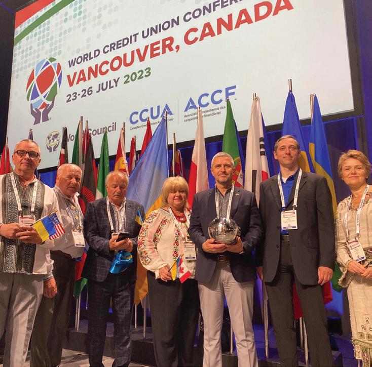 M Oleg Lebedko, UFCU CEO, earns the 2023 Distinguished Service Award presented at the annual World Credit Union Conference this year in Vancouver, Canada.