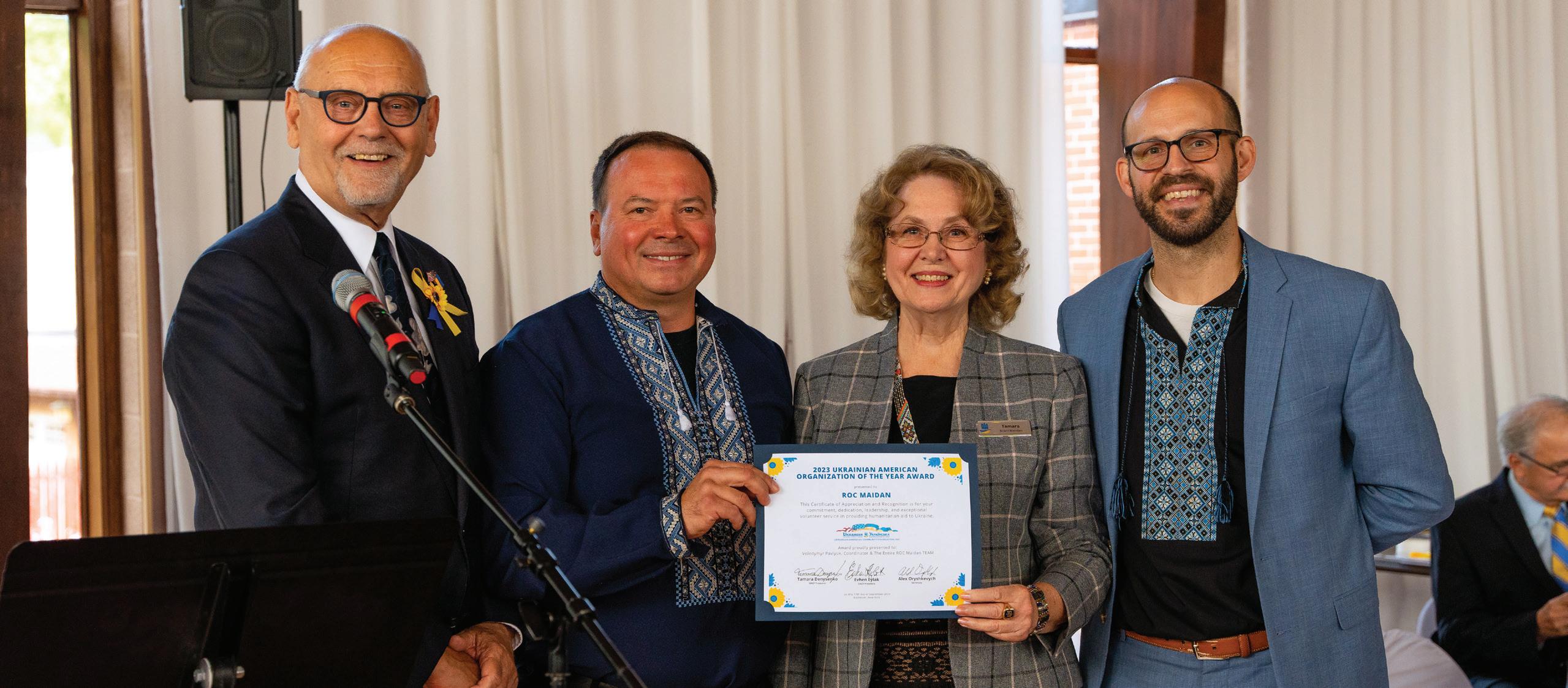 In 2023, in addition to the UFCU donation of $35,000, donations of $4,450 were generously provided for humanitarian aid and scholarships by individual donors. The UACF supported a wide range of projects throughout the year for the benefit of the UFCU community including lectures held by the Skalny Center for Polish and Central European Studies at the University of Rochester on the 90th Anniversary of the Holodomor and current war in Ukraine; the dedication of the Mirko Pylyshenko Community Library and the virtual reality exhibit at the Irondequoit Public Library “VR Museum of War – War Up Close”. In 2023 UACF presented a “Ukrainian of the Year” Award to ROC Maidan in recognition of their work of collecting and shipping humanitarian aid containers and medical supplies to Ukraine.