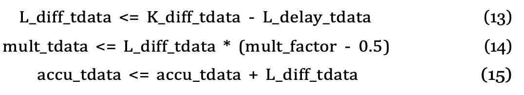 Based on the considerations in Section 5.2, the peak detector (peak_detector) module has IO consisting of an AXIS slave to receive the filter response and inputs for the values of a threshold and the K- and L-delays. To extract the middle-most value as discussed in the aforementioned section, the module waits until the incoming filter response passes a given threshold and then waits until the middle-most point in the response to record its value.