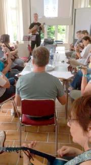 We hebben meteen de grootste lol in het spelen van onze eigen variatie op bekende liedjes en onze meerstemmige zang klinkt wonderbaarlijk goed samen, al rammelt het hier en daar nog aan alle kanten. Het hoeft nergens aan te voldoen en dat is juist zó fijn. Wat is er leuker dan samen ongedwongen muziek maken en daar helemaal in op kunnen gaan, helemaal in het nu zijn, zonder bezig te zijn met hoe het zou moeten klinken. Dat is genieten.”