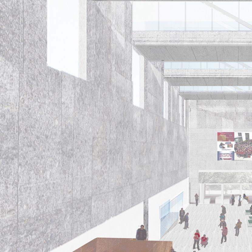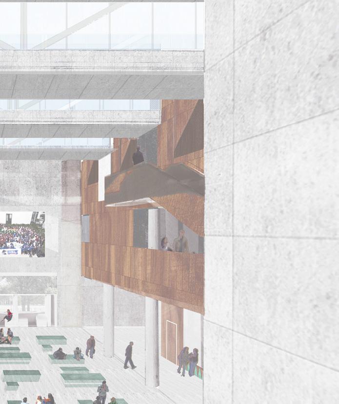 This triple height 400m2 space will be the hub of the new Centre, with ample amounts of casual comfortable seating it will be full of natural light, a hive of activity, connecting students to information, supports ,a UL Wolves store, a coffee hub, an outdoor garden, down some steps to a multi-purpose auditorium and up some steps to 7 large meeting rooms and a new pool and games room and so much more…