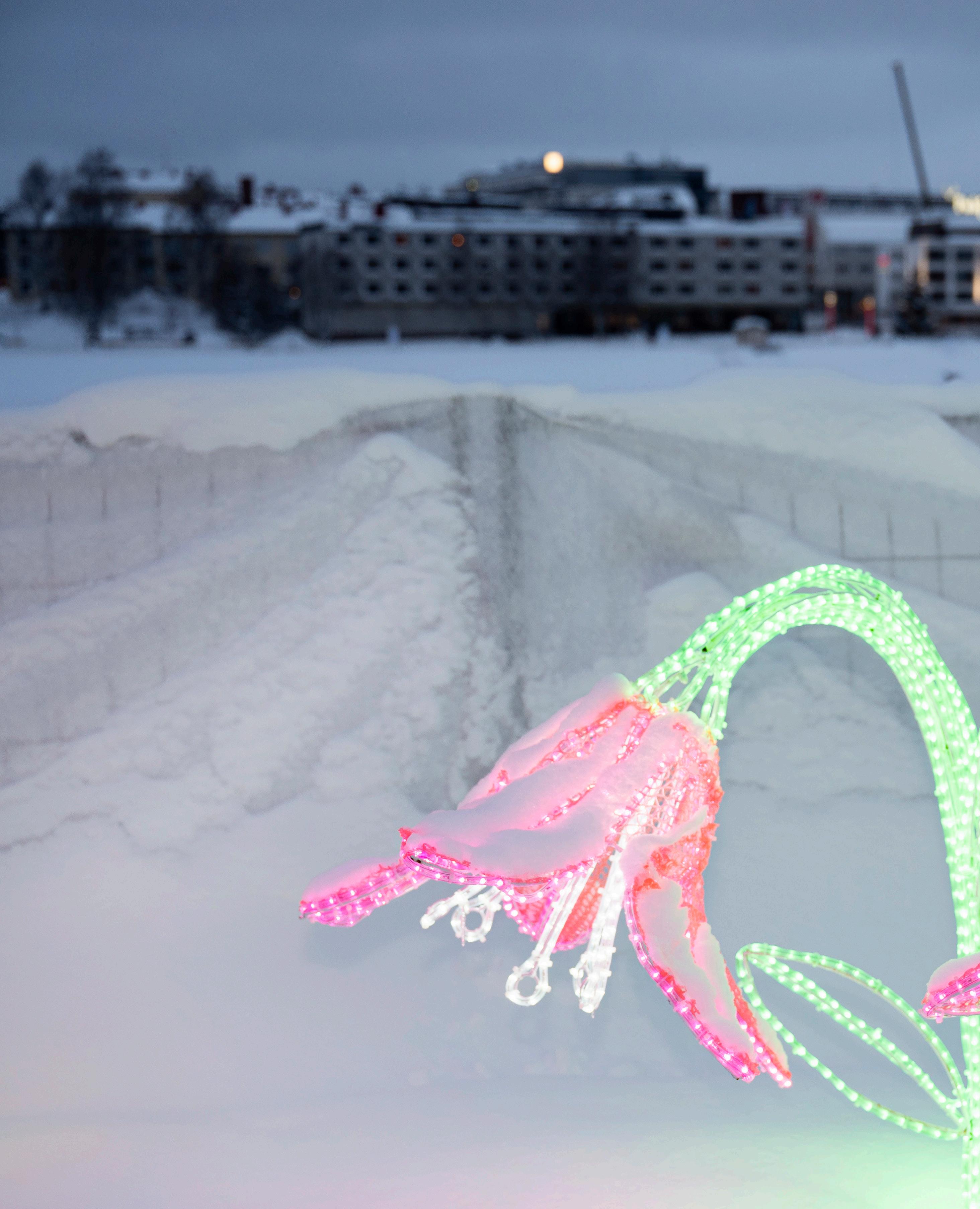 Välkkyvät näytöt puhkovat pakkassumua.