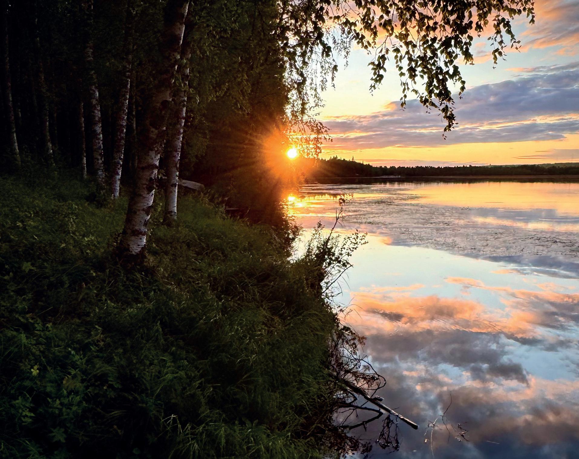 J oka päivä palaan voimapaikastani virkistyneenä ja elinvoimaisena. Voimapaikkani on metsän reunustama järvenrantapolku, jonne pääsee suoraan kotini ovelta. Kun kuljen puiden keskellä alas muinaista rantaviivaa, vasemmalla puolellani virtaava puro on merkki siitä, että voin unohtaa päivän huolet ja hengittää syvään. Virittäydyn tuoksuihin, näkymiin, ääniin, väreihin, heijastuksiin ja tunnelmaan. Matkustan vuodenaikojen mukana; ne vaihtelevat nopeasti ja moninaisesti täällä pohjoisella napapiirillä.