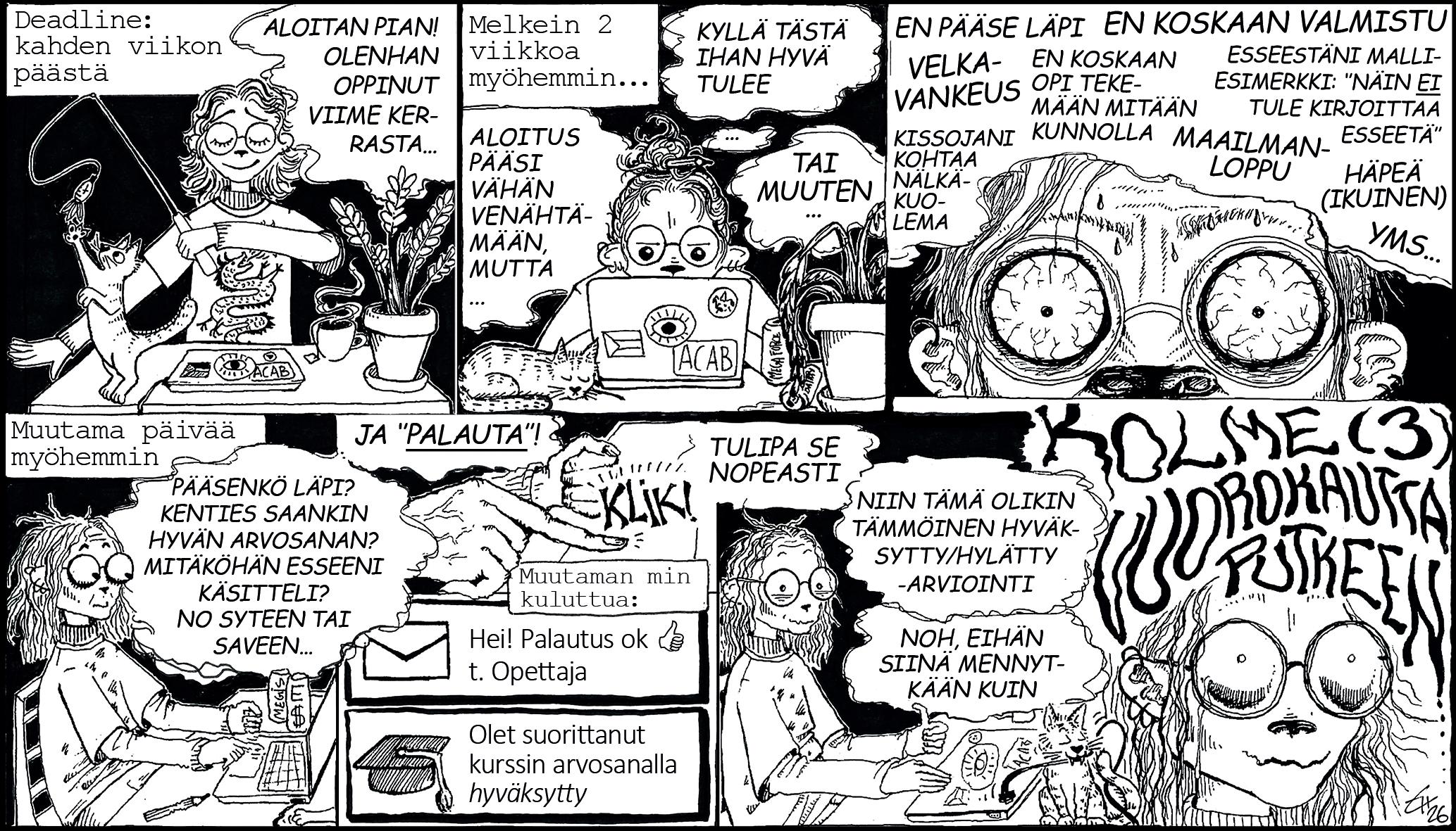 Ehkäpä ”eläkee immeisiksi” tarkoittaisi akateemisessa maailmassa juuri tätä: ajan kanssa ajattelua. Välittämistä siitä, mitä ajattelemme. Ja ajattelua siitä, mitä teemme. Se on akateemista vastuunkantoa. Jos jostain pitää kilpailla, kilpaillaan siitä.