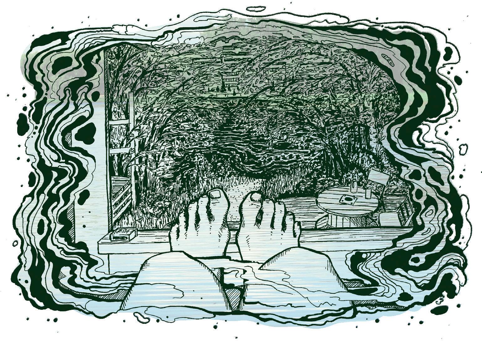 Koen itseni onnekkaaksi graafikkoharjoittelijan pestistä nykyisessä työllisyystilanteessa ja erityisesti siksi, että saan piirtää työkseni. Tähän lehteen piirsin sarjakuvan ja kuvitin jutun Mitä Lappi tuntee? Kuvitusprosessi tuotti mielikuvia, joita aion Lappi-vuosistani vaalia. Eräs niistä on Valiosauna, Rovaniemen viime kesän yhteisöllisin kohtauspaikka, jonka kaupunki traagisesti päätti sakkojen kera lakkauttaa. Kiitokset saunan aktiiveille luksuskesästä!
