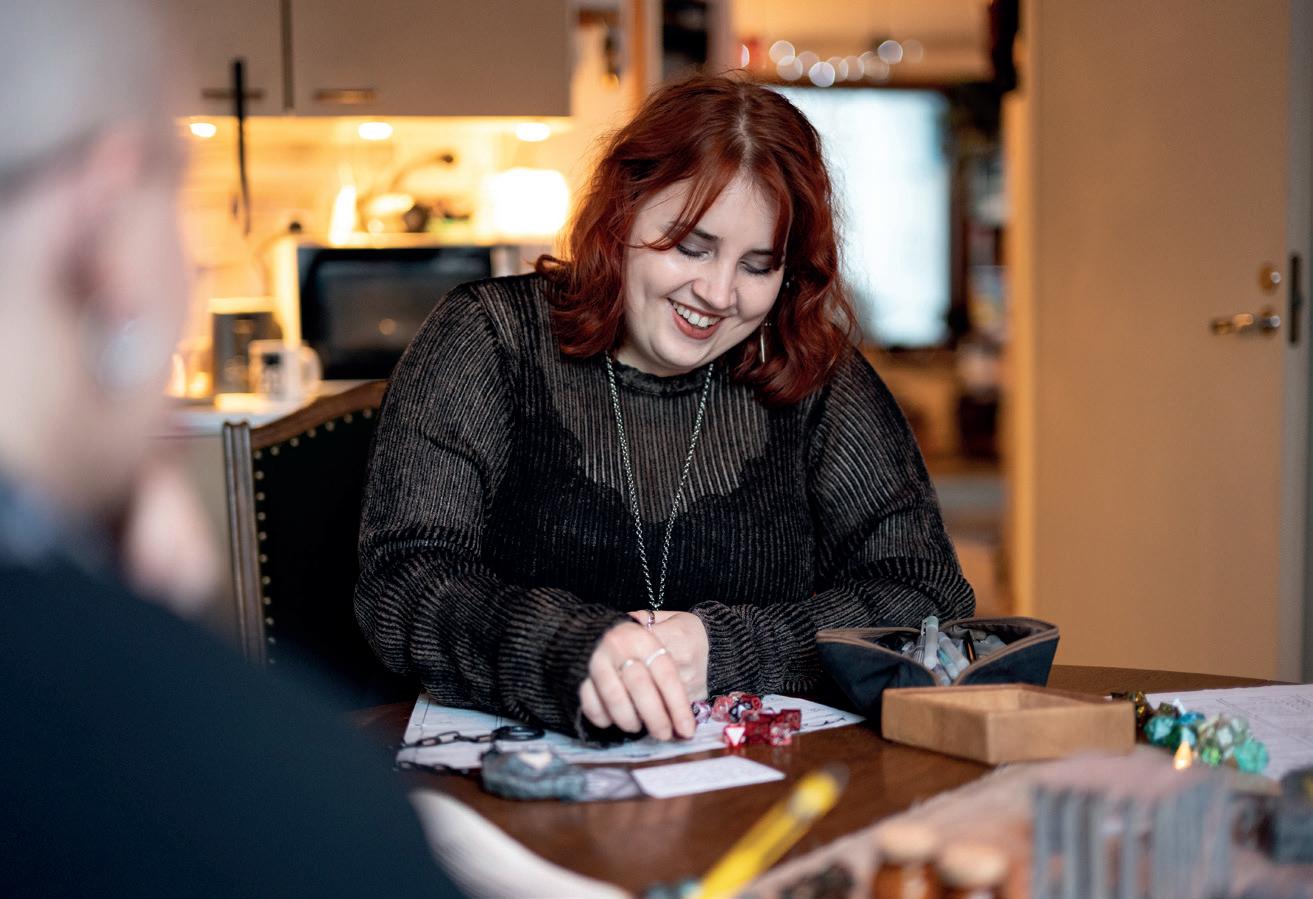 – Roolipelaaminen on yhdistelmä yhdessä pelaamista, leikkiä ja näyttelemistä. Hullu luovuus kohtaa todella yksityiskohtaiset säännöt, Susanna naurahtaa.