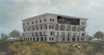 Thetheatreisintegratedintotheruin withdiffuseway.Performancearea takealotofspaceindifferentcorners ofthebuilding.Fromthemainhallthe spaceslowlygoto-2floor.Whichis completelystaysopentotheatretransformation.Andthelobbyalsocouldbe useforperformance.Thegeneralsite istheopensummertheatrepavilion. Ittakesafreespacebetweenupper columnsrows