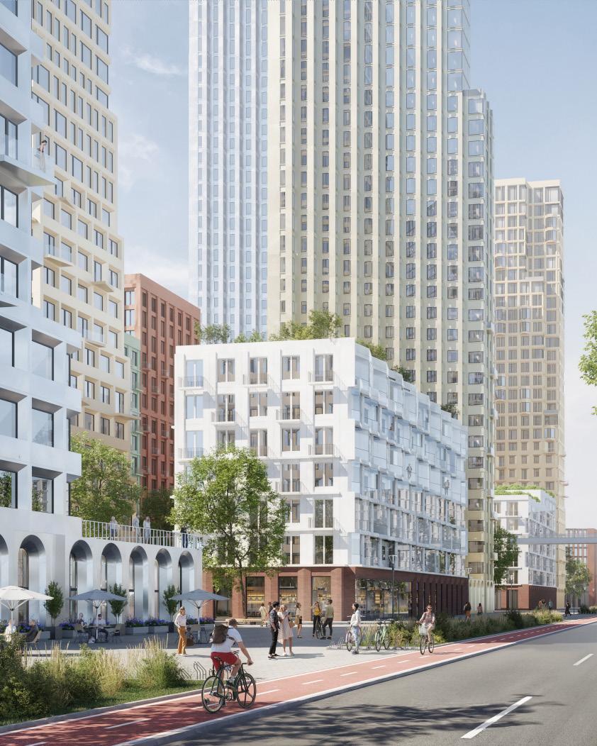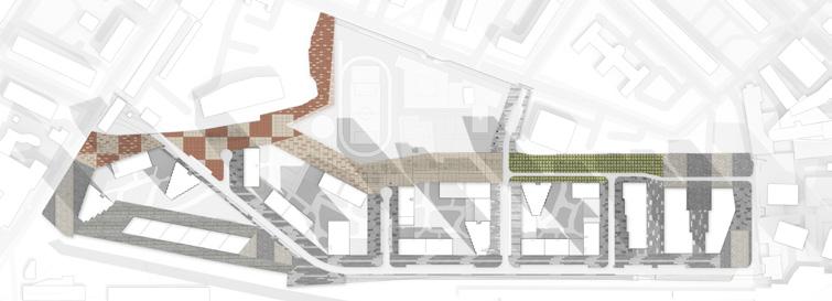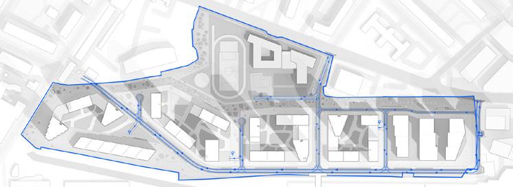 The redevelopment project of the former industrial area along the railway tracks include three theses: a linear high-rise city along the railway, urban sculpture, and spatial scenography. The linear shape of the site sets a new dimension and is supported by a boulevard. The mixed-height buildings with high-rise accents and contrasting typologies create diverse levels of perception and spatial richness.