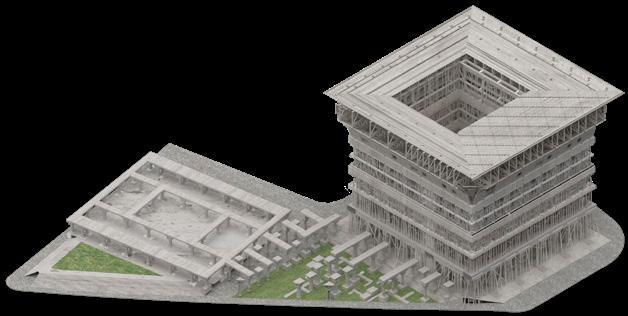 Thebuilding' sshapeexhibitsareversetectonics,anditsfullconstructionformresembles originalcapitals.Itborrowstheproportionsandtherelationbetweenpartsandthewhole fromthecapitals,creatingaharmoniousandcohesivearchitecturaldesign.