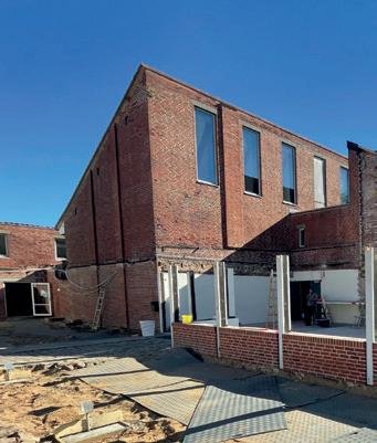 ud for Udgård mod syd. Som I kan se på tegningerne af byggeriet, så har vi vægtet at byggeriet matcher det bestående byggeri med røde mursten. Det bliver et kæmpe aktiv for højskolen og en tiltrængt forbedring af vores rammer for idrætsfagene. Når hallen står færdig engang i 2024, som for øvrigt er vores 175 års jubilæumsår, så mangler vi kun den sidste del af den store byggeplan. 2/3 af gymnastiksalen bliver omdannet til et stort teater-koncertlokale med optimale muligheder for vores teaterundervisning, faciliteter der også kan bruges til at optræde med musikhold og mange andre ting. I den sidste tredjedel af gymnastiksalen ud mod gårdspladsen laver vi dels en ny hall/ indgang fra gårdspladsen, og dels et stort depotrum. Denne del af byggeriet er fortsat på ideudviklingsstadiet, men vi drømmer stort! -Og vi tror på, at det bliver virkelig godt.