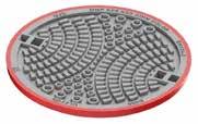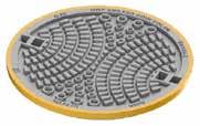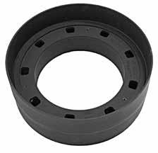 Justeringsring i fleksibelt materiale og tilpasset Ø650 mm betongkjegler/ringer med fals-skjøt. Justeringsringene plasseres mellom betongringene. Demperingene opptar ujevnheter og stabiliserer kumtoppen. Unngå skader på betongkjegler/ringer.