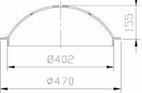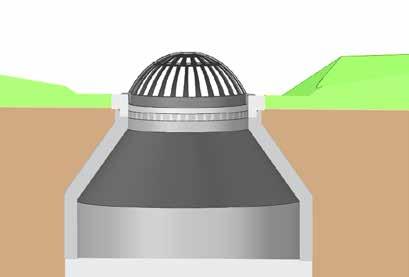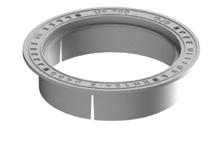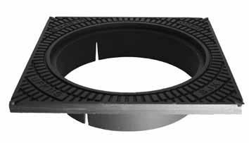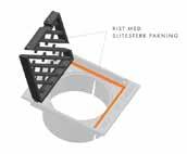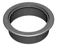 Avslutningsring i fleksibelt materiale tilpasset Ø650 mm betongkjegler/ringer med fals-skjøt. Avslutningsringen har ”utsparing” for UFNS/UFNS-H rammens kne. Unngå skader på betongkjegler/ringer.