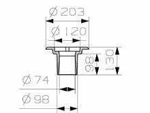 RHISAK monteres på en AS-ring og består av en glassfibertrakt, håndtak med splinter og en pakning for oppheng av nedforingsrøret. (Bruk 150mm X-stream overvannsrør som nedføringsrør.)