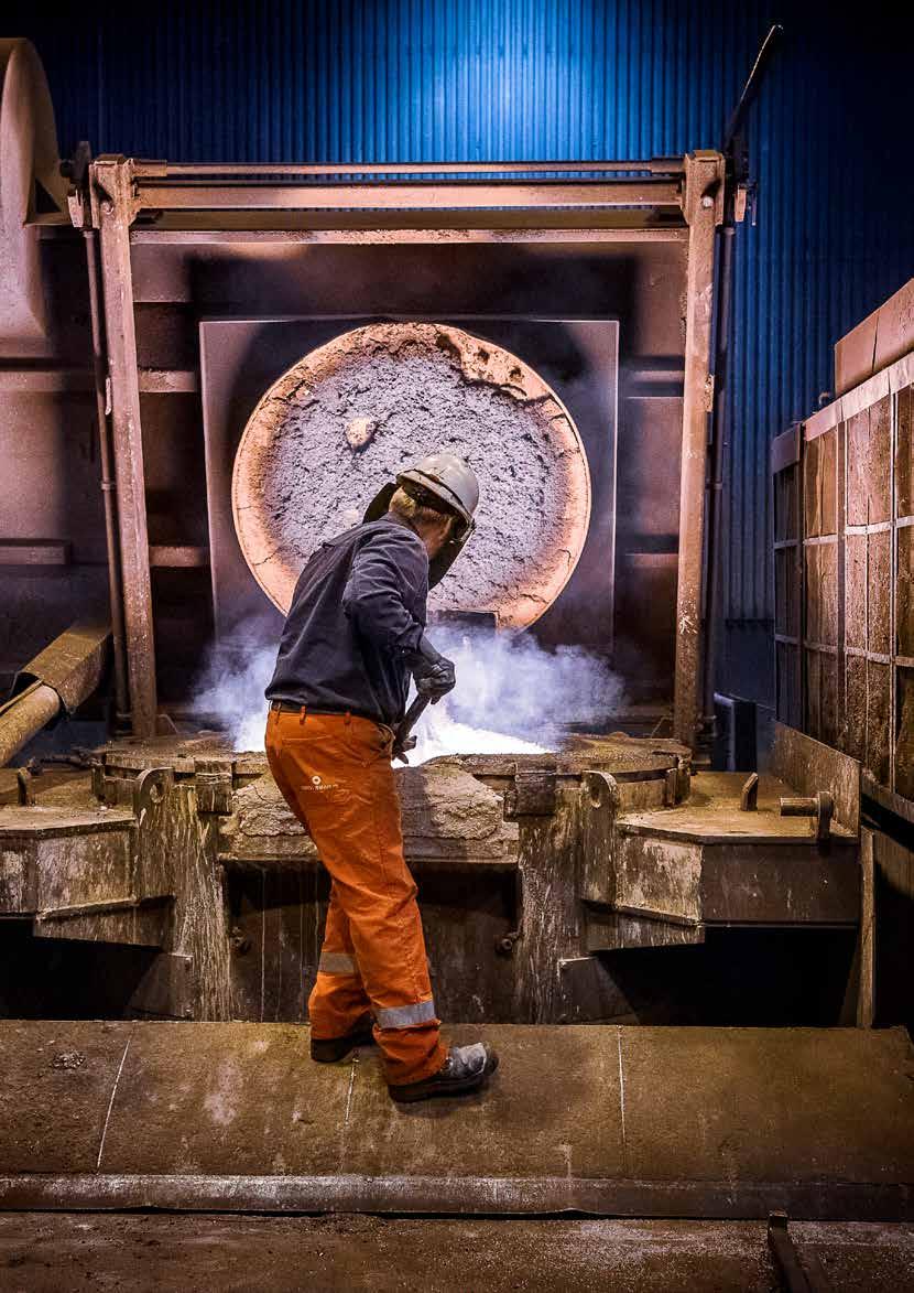 ved vårt støperi benytter vi kortreist skrap, bestående hovedsakelig av bilfelger og stålkonstruksjoner fra byggindustrien.