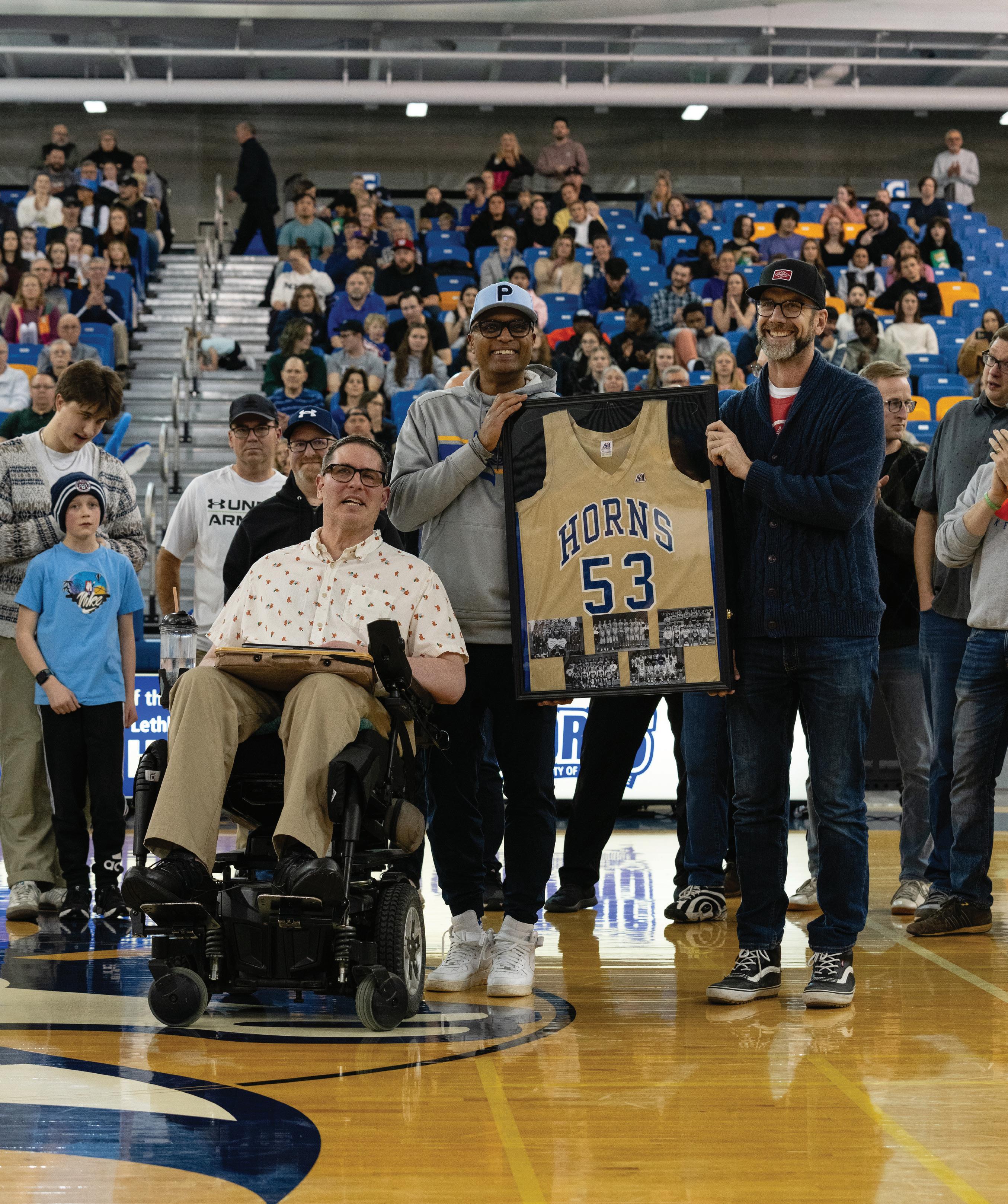 Tim Rollingson (BSc ’99), the teammate who first thought of the scholarship explained, “Jared is a shining example to incoming players of what it means to be a student athlete, contribute to community and take care of one’s family. Together, as Pronghorn Herd, we can express our love for him.” This humble idea will benefit new recruits coming to the University of Lethbridge men’s basketball team for endless seasons to come.