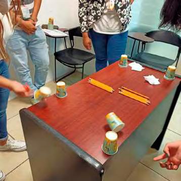 El primer reto consistió en armar una pequeña torre con tres vasos y dos pedazos de papel, construida la torre, vino lo difícil, la persona tenía que retirar lo más rápido posible el primer pedazo de hoja tratando de que el vaso de arriba cayera en el vaso de en medio y retirar la segunda hoja para que cayeran los dos vasos en el último.