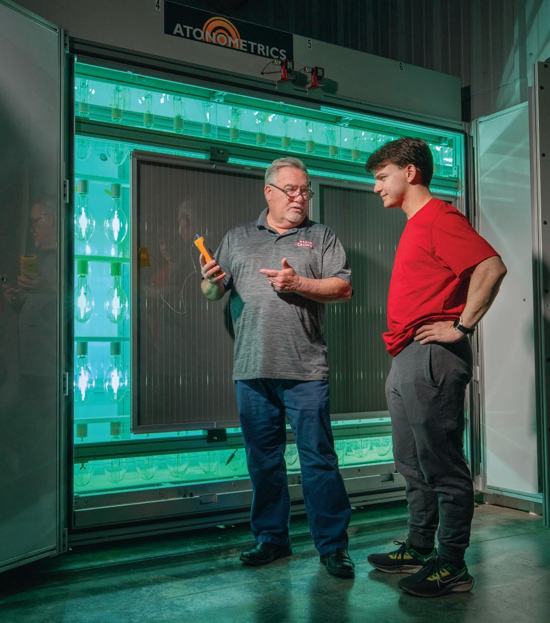La Louisiane is published by UL Lafayette’s students through the STUDENT GOVERNMENT ASSOCIATION, by UL LAFAYETTE and by COMMUNITY SUPPORTERS 32 36 louisiana. e du/lalouisiane 8 ON THE COVER: The “biggest, coolest” equipment around – like this light-soaking chamber – is among the reasons the University is an international solar energy leader. Photo by Doug Dugas. Dr. Joseph Savoie President University of Louisiana at Lafayette Dr. Jennifer Stephens Associate Vice President Communications and Marketing Volume 30, Number 1. $5 an issue. La Louisiane is published by the Office of Communications and Marketing in the Division of University Advancement (337) 482-6397 LaLouisiane@louisiana.edu © 2024 University of Louisiana at Lafayette University of Louisiana at Lafayette is a member of the University of Louisiana System. Dr. James Savage Editor Marie Elizabeth Oliver Managing Editor Charlie Bier Associate Editorial Director Katherine Frazer Student Editor Kade Parker Editorial Intern Christi Landry Bell, Adam Cortez, Christine Payton, Kathleen Thames Contributing Writers Courtney Jeffries Creative Director André Broussard Graphic Designer Doug Dugas, Paul Kieu Photographers Philip Gould, Danny Izzo, UL Lafayette Special Collections Contributing Photography FEATURES 18 Happy Birthday to Us DEPARTMENTS RESEARCH 2 End of the Road 6 FUEL for the Future ON CAMPUS 8 Roy House Restored 12 Love Language STUDENTS 14 Radio Renaissance 16 Ice Age Finds SPORTS 38 Field Work ALUMNI ASSOCIATION 40 Enduring Legacy ALUMNI 45 Alumna Makes History GIVING 46 Prescription for Success 47 ‘A Wonderful Life’ 32 Sun King 36 Domination VISIT LOUISIANA.EDU/LALOUISIANE FOR A DIGITAL VERSION OF LA LOUISIANE SIGN UP FOR THE @LOUISIANA NEWSLETTER FOR THE LATEST UNIVERSITY NEWS. OCM.LOUISIANA.EDU/SUBSCRIBE Celebrating18 Let’s keep in touch. Update your contact information by visiting alumni.louisiana.edu/membership/update-profile