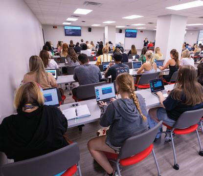 The fourth floor of the former St. Francis Medical Office Building – now known as James D. Moncus Hall – welcomed students last fall. Extensive renovations created six classrooms, two conference rooms, a student lounge and wellness space, a faculty and staff lounge, and office space for faculty.
