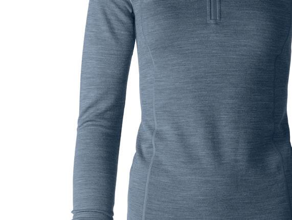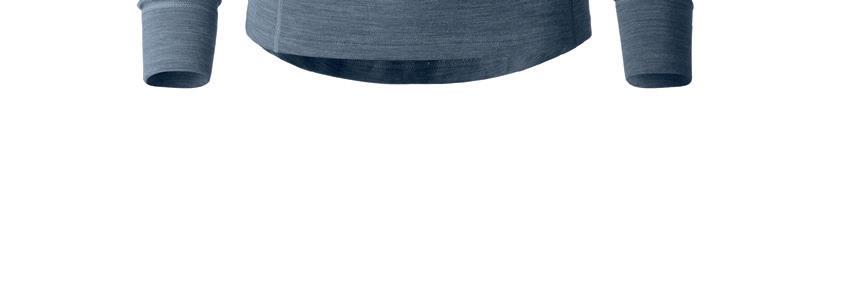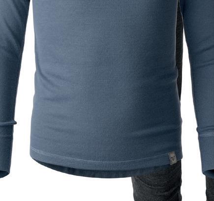 Underställströja med värmande merinoull på utsidan och mjukt funktionsmaterial på insidan. Detta ger ett plagg som är varmt, slitstarkt och inte kliar. Platta sömmar för skön komfort.
