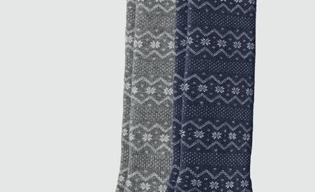 Höga strumpor i varm och skön ullfrotté. Resårstickning runt foten ger en strumpa med bra passform. Säljs i 2-pack innehållande ett par grå och ett par blå strumpor.