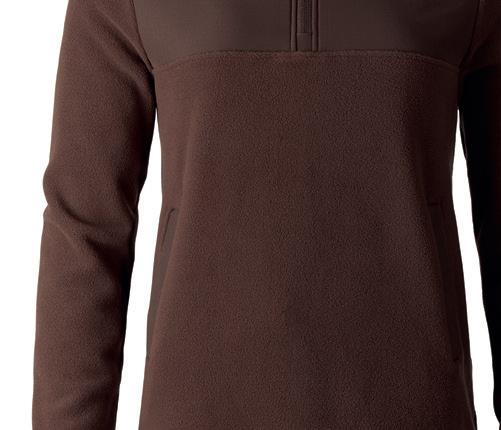 Mjuk och värmande fleecetröja med ett vävt tyg på axelpartiet och två framfickor.