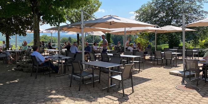 Auf der grosszügigen Sonnenterrasse lässt es sich gut verweilen und geniessen. Solltest du einen exklusiveren und privateren Rahmen wünschen, wäre der kleine Pavillon die Räumlichkeit für dich.