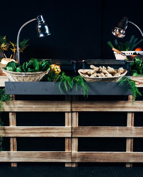 An stilvoll dekorierten Stationen wird live gekocht, angerichtet und begeistert.