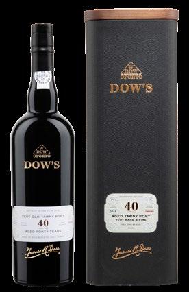 Tawny Port 40 Years Dow's Grande expérience ! Robe acajou avec des arômes de tabac, de cèdre et de cannelle. Une structure soyeuse avec des tanins merveilleusement intégrés et des arômes complexes. Finale très longue.