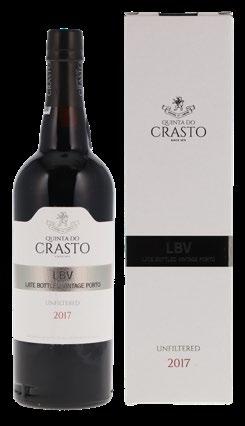 75 cl | 20 % | ACTUELLEMENT 159.–LBV Port 2017 Quinta do Crasto Un LBV est un vin millésimé de grande qualité. Il est un peu plus léger que le porto vintage et est prêt à boire après quatre à six ans de vieillissement en fût. Le bouquet s'ouvre sur un délicat parfum de myrtilles. Le corps dense et souple évoque les baies noires. Les tanins et l'acidité restent discrets. La finale est dominée par le fruit et un peu de chocolat noir.