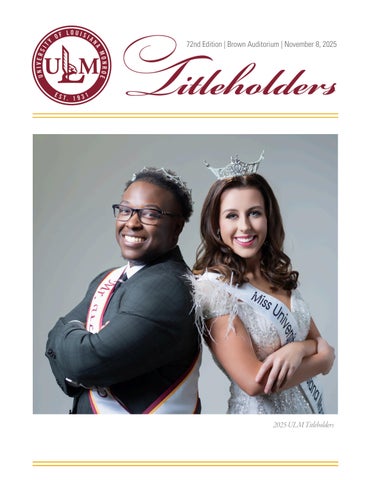 Welcome to our annual Titleholders Competitions! This year, we celebrate the 72 crowning of Miss ULM and the 8 crowning of Mister ULM We appreciate your support of these events, and we are glad to have you on our campus nd
