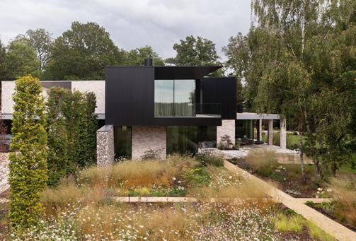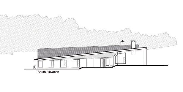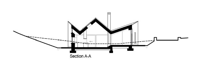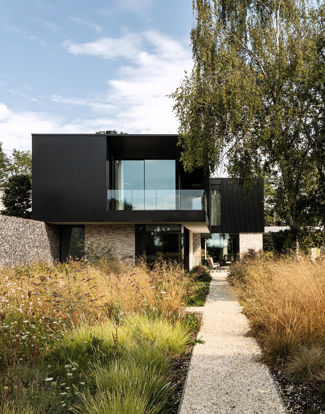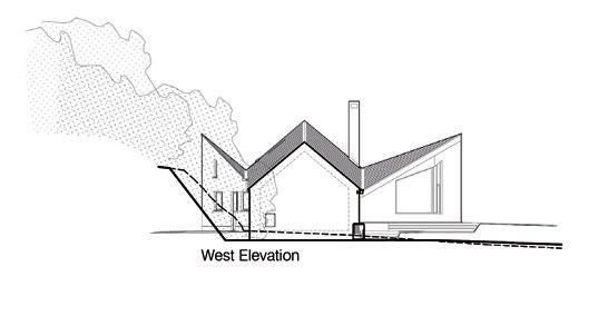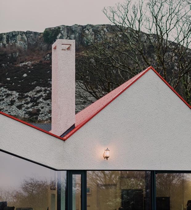 The architects have innovatively conceived the roof design to reduce its perceived scale. It is a two-storey dwelling but, according to the architects, the special geometry of the roof and the shape of the house (which is not a perfect rectangle) creates the illusion of the roof sitting lower; “it looks like a singlestorey dwelling from the road”. It is a clever configuration and it helps tie the house more effectively to vernacular precedent as intended. The chimney is a distinctive feature of the house and its form echoes that of Doe Castle, marking another linking device with the surroundings.