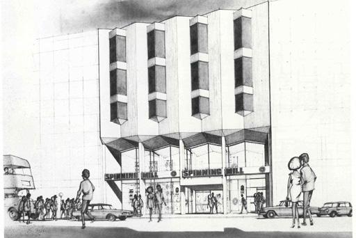 Their breakthrough into large-scale retail work, that would come to define the practice for the next four decades, came in the form of retail entrepreneur John Goldstone. Not quite as young but every bit as bold, ‘Johnny’ moved to the Province from Manchester in the mid-1930s, establishing a number of retail chains that benefited from that post-war, pre-conflict optimism. One such chain was the Spinning Mill, established in the 1950s and expanding to eleven outlets across Northern Ireland and Scotland at its height.