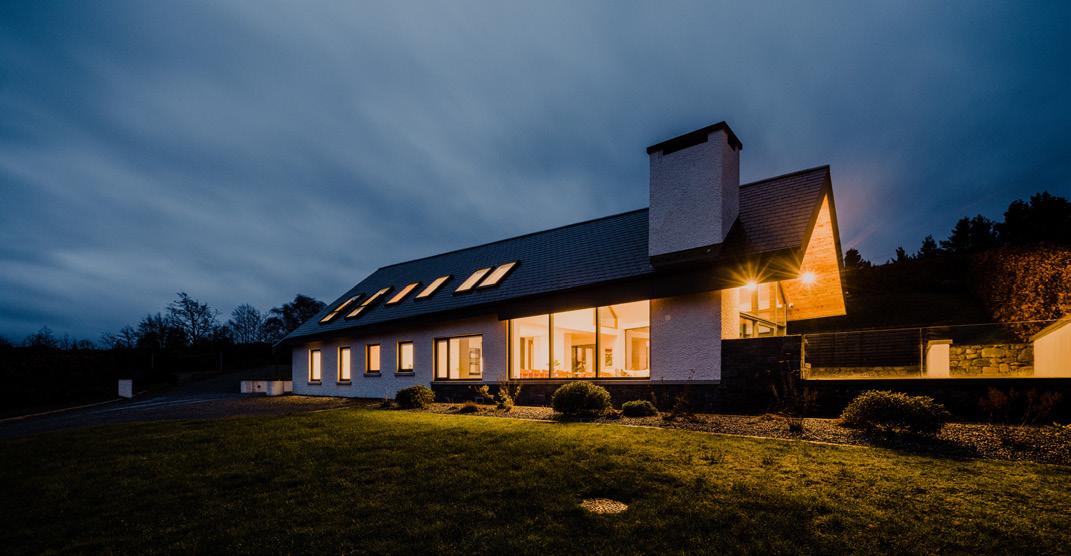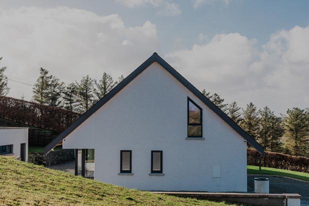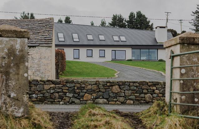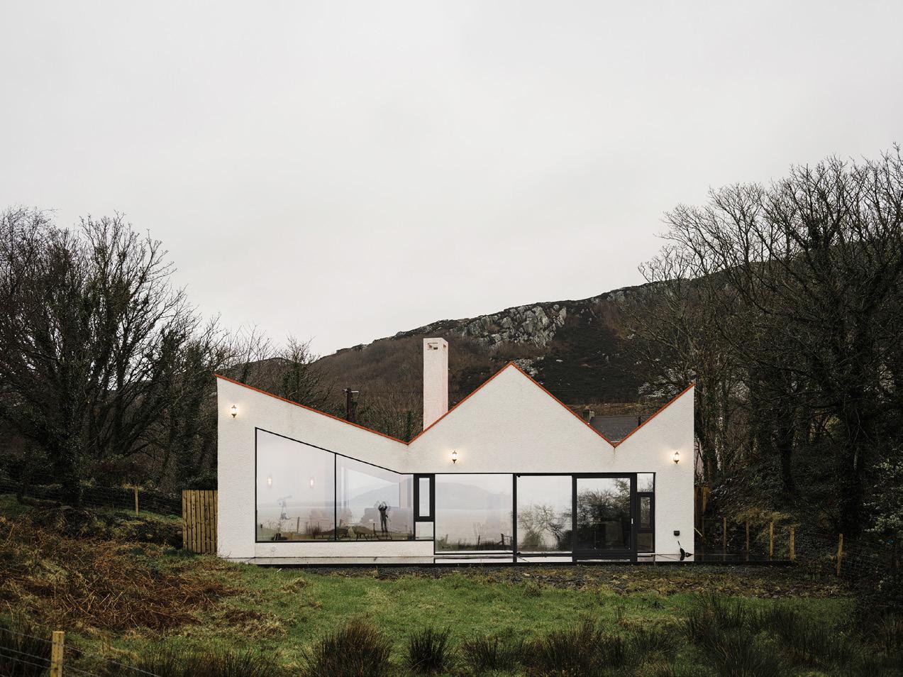 to become Wright’s integrated pronouncement that ‘form and function are one’ and should be equally reflected in design. Liam McCormick is widely recognised as Donegal’s most important modernist architect and his work, predominantly in church design, can be seen to follow Wright’s principles, primarily in relation to buildings reflecting their context in form and colour. Notable examples include the Church of St. Aengus, Burt (1967), where the church’s shape was inspired by the nearby bronzeage hill fort of Grianán of Aileach, and St. Michael’s Church at Creeslough (1971) with its contours echoing the surrounding mountains. Equally these design ideologies inform the work of MacGabhann Architects and are visible in two recently completed houses, Cashel and Sámhnas, both located in County Donegal.