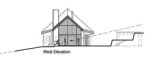 A distinctive feature of the house is its red roof that connects with the existing vernacular of the adjacent shed and the overall locality. In my opinion, the west elevation of Sámhnas unites aesthetically with McCormick’s Fish Auction Hall, in Killybegs, (1983) through McCormick’s use of red corrugated tin, a series