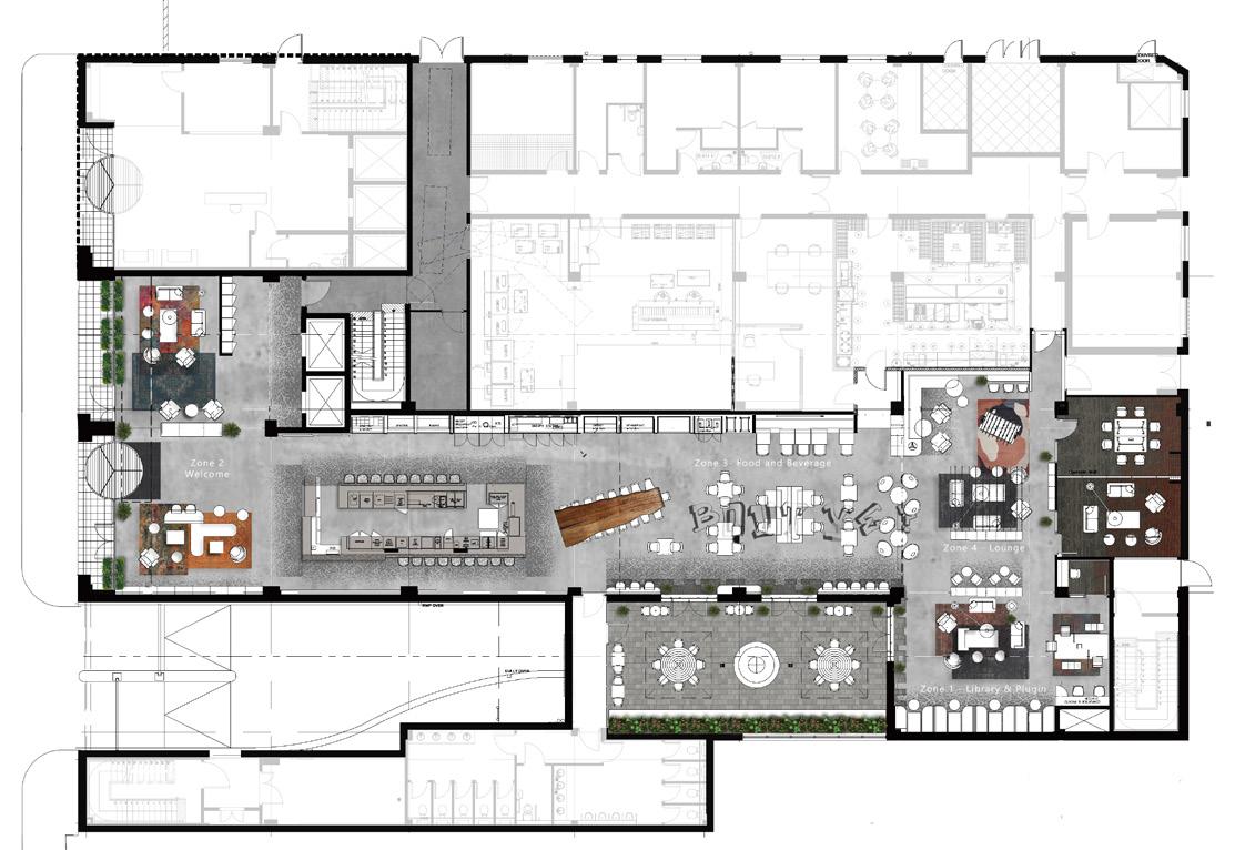 storey frontage; there was nothing like that in Belfast at the time.” Robinson developed this simple concept further. “I wanted to recess the whole shopfront by six feet to give depth to the entrance, pulling people in and bringing out the geometry of the elevation. At first Johnny was unsure as he was losing quite a bit of retail space. I persuaded him, showing him what we had seen in London. He was excited, seeing that it was a totally new retail concept for Belfast.”