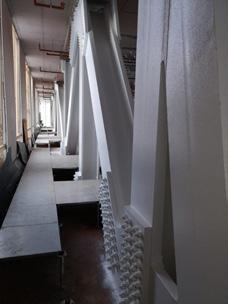 Despite this, the building has retained signs of its original design quality, evident for those willing to stop to consider it as a significant piece of architecture. The unusual white tiled ‘zig-zag’ façade, terminating in chevron detailing, over fullheight glazing to the lower two floors; black-framed glazing to the upper floors with geometry matching the complexity of the facade; the carefully considered detailing of the tiles to the complex angles as the façade folds back into the first floor