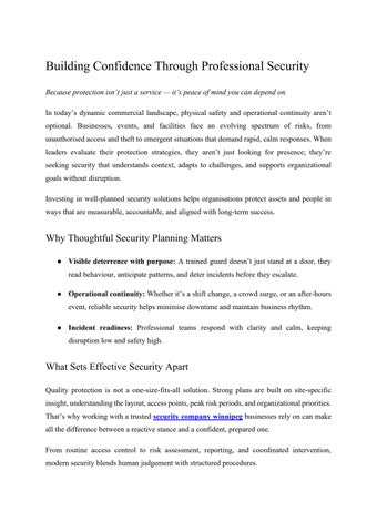 Investing in well-planned security solutions helps organisations protect assets and people in ways that are measurable, accountable, and aligned with long-term success.