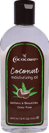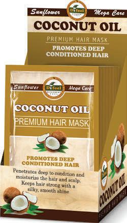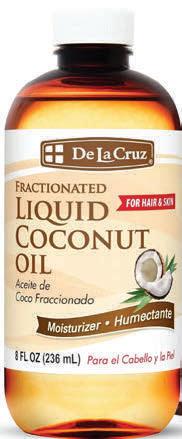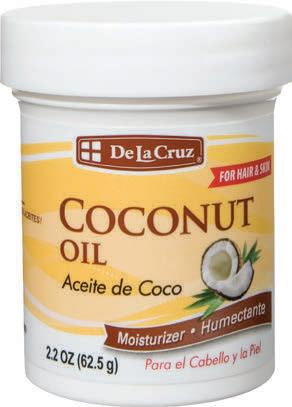 Coconut Oil, rich in lauric acid, is easily absorbed into the hair shaft to moisturize, enrich and restructure the hair leaving it soft and shiny.